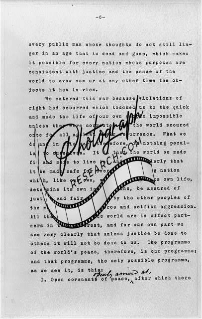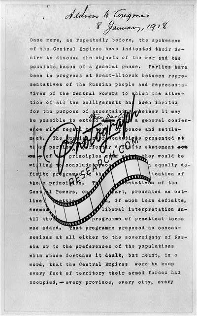 [[Four pages of Wilson's draft for his "Fourteen Points" address, delivered befor