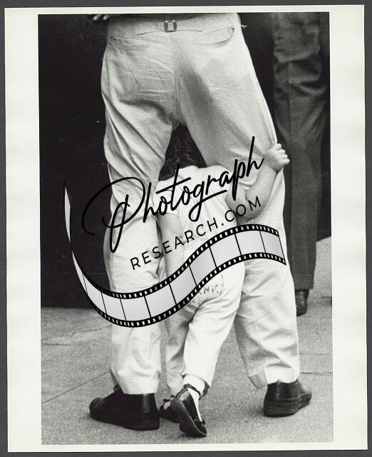 [[Young child standing between legs of adult, back view]]
