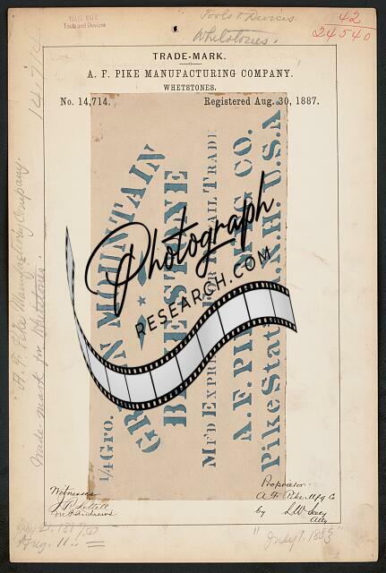A. F. Pike Manufacturing Company for Green Mountain Blue Stone brand Whetstones
