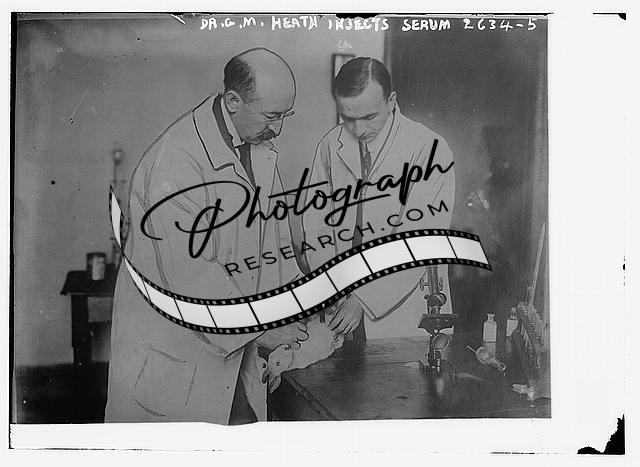 Dr. George M. Heath injects serum rabbit,scientist,developed tuberculosis serum