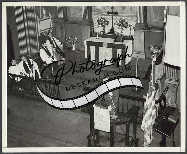 [[Three men, possibly inside a church]] / Photograph by Anthony Angel.
