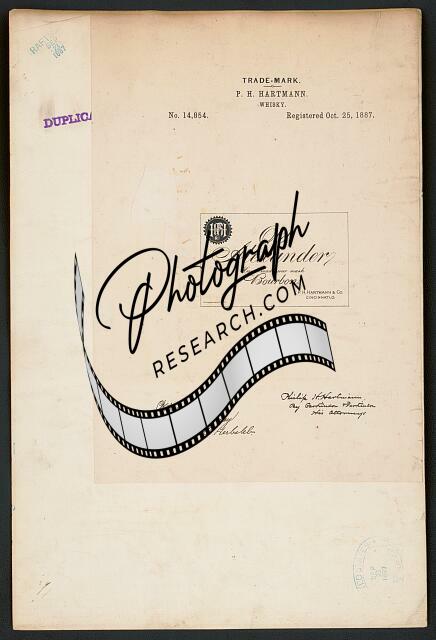 P. H. Hartmann for Blue Mountain Pennsylvania Rye brand Whisky