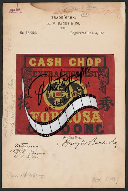 H. W. Banks & Co. for Cash Chop Extra Choicest Formosa Ooloong brand Tea