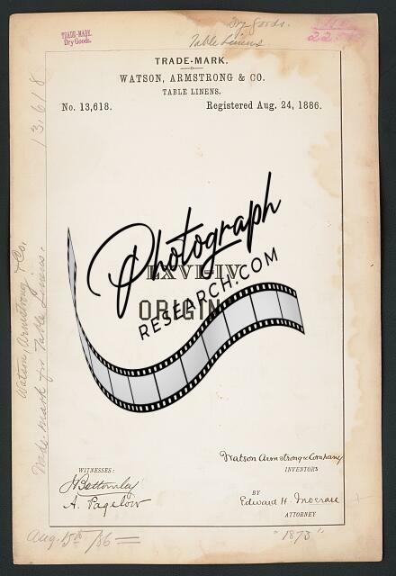 Watson,Armstrong & Co. for LXVI-IV Original brand Table Linens