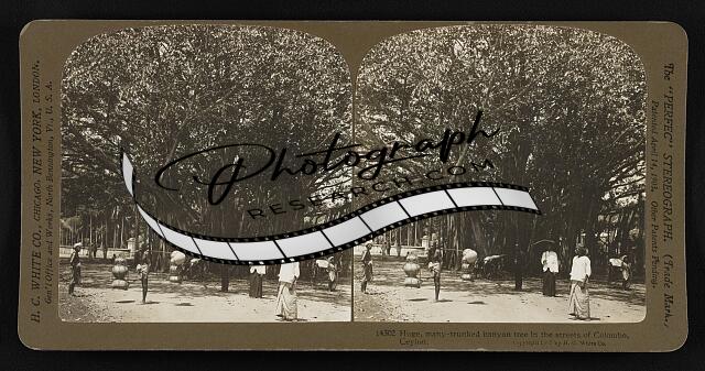 Huge, many-trunked banyan tree in the streets of Colombo, Ceylon