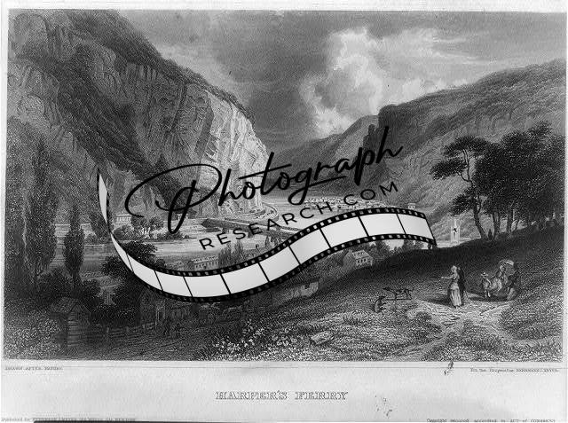 [[Harper's Ferry--general view with bridge, railroad tracks, mountains, etc.]]