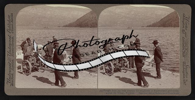 Freight from the little steamer for neighbors on Fagerstrand pier--view across t