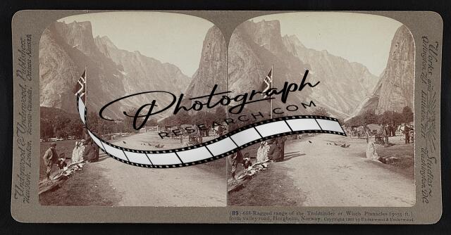 Ragged range of the Troldtinder or witch pinnacles (5055 ft.) from valley road,