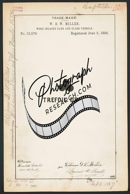 W. D. W. Miller for Trefoil Drum brand Wood Incased Cans,Glass Vessels