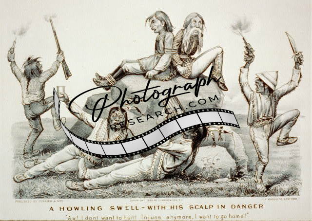 A Howling Swell,War Path,Indians hide behind rock,Cowboy,Snifter,c1890