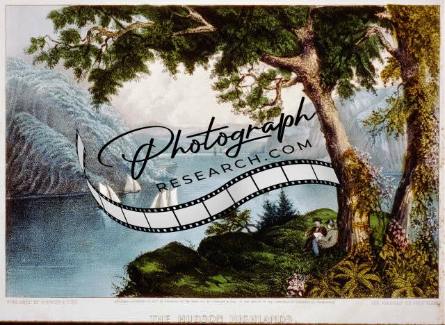 The Hudson highlands,c1871,Currier & Ives Photo,Sailboats,people,tree