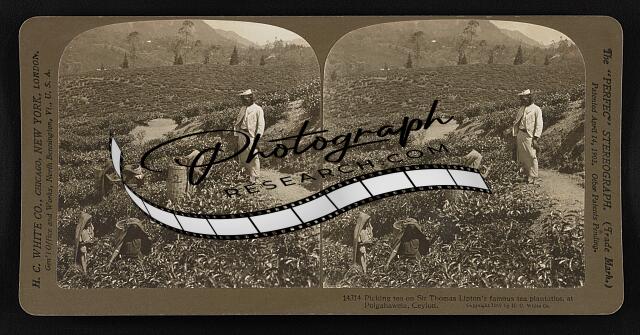 Picking tea on Sir Thomas Lipton's famous tea plantation, at Polgahawela, Ceylon