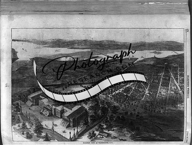Balloon view of Washington,D.C.,US Capitol with dome not yet completed,1861