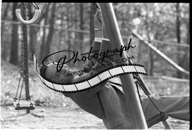 Photograph shows Look Magazine photographer Bob Lerner, with children outdoors at the Emma Pendleton Bradley Hospital, a residential treatment center for mentally ill children in Riverside, Rhode Island.