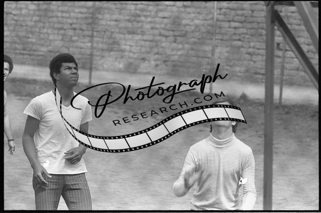 Photograph shows members of the Charles Lloyd Quartet, including Keith Jarrett with fans during the time of their appearance at a jazz festival in Tallinn, Estonia.