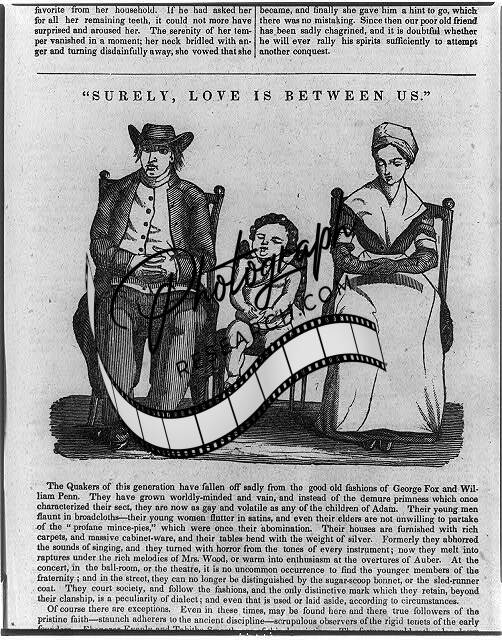 Surely,Love is between us,Quaker couple sitting,cupid sitting between them,1836