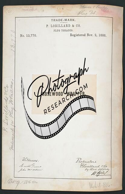 P. Lorillard & Co. for Rosewood Wrapper. brand Plug Tobacco
