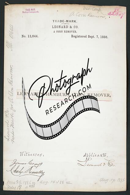 Leonard & Co. for Leonard's Hamburg Corn Remover. brand A Corn Remover
