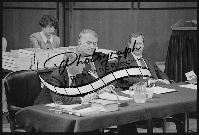 [[Senator Dennis DeConcini (right) seated next to his lawyer, James Hamilton, at