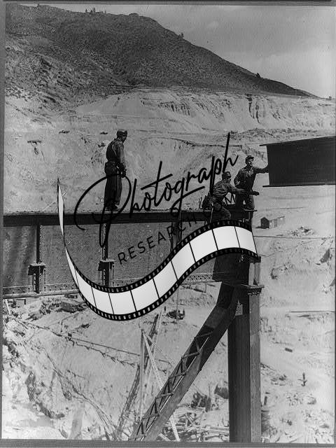 [[Grand Coulee Dam, Washington. Workers on bridge]]