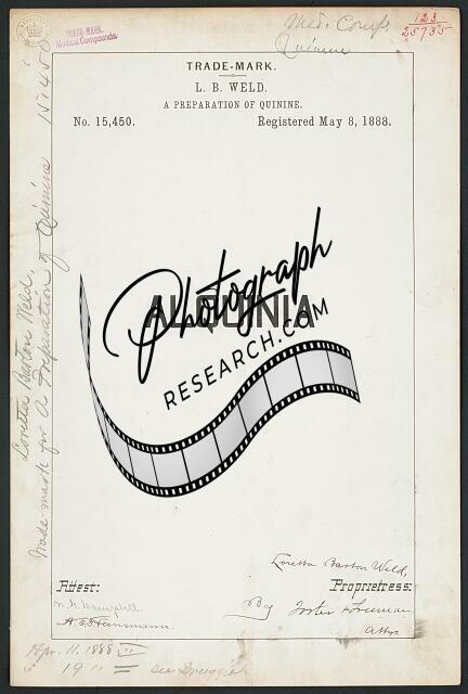 Title: [Trademark registration by L. B. Weld for Quinodium brand A Preparation of Quinine]
