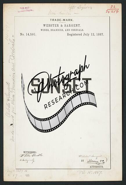 Webster & Sargent for Sunset brand Wines,Brandies,Cordials