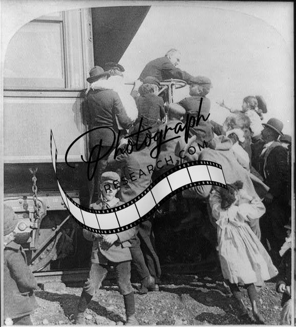 [[President McKinley greeting children at Canton, Ohio railroad station]]
