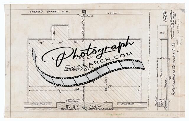 [[Library of Congress, Washington, D.C.]] [[Excavation for boiler room, chimney and coal vaults.]] [[Plan of excavation]] / Bernard R. Green, superintendent & engineer.