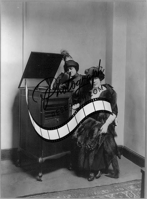 [[Alina Gluck and Louis Homer listening to their voices on the Victor talking mac
