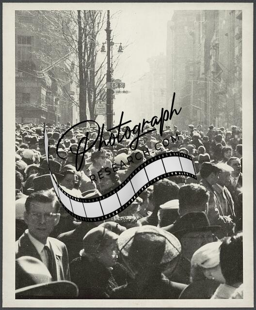 [[Large crowd of people gathered outside on E 51st Street, New York City]]