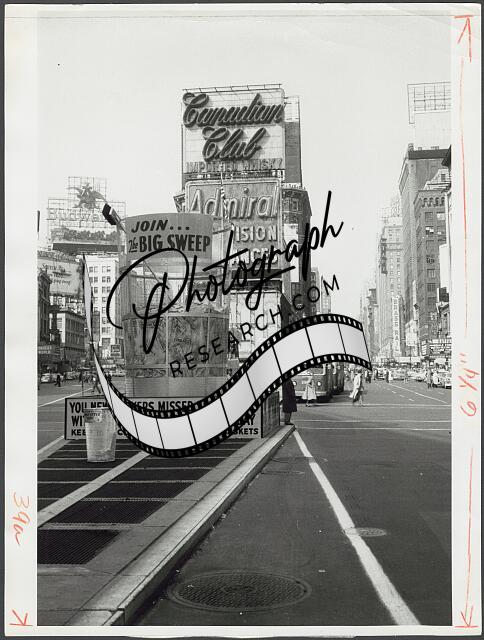 [[View of people around entrance to the Eighth Ave. subway station, sign reads "D