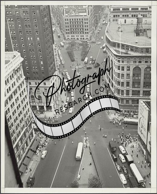[[Aerial view of Herald Square on Broadway and W 34th Street looking towards Gree