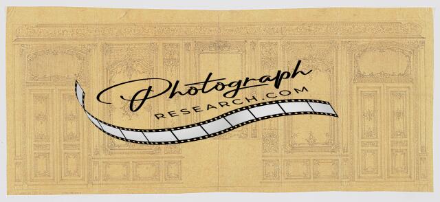 Original architectural drawing showing ornate interior wall with portrait of woman.