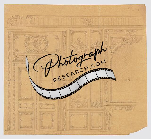 Original architectural drawing showing ornate interior walls and panel details in and around doors.