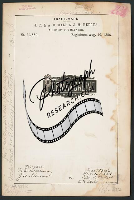 J. T. & A. C. Hall & J. M. Hedges for Permangaline brand A Remedy for Catarrh