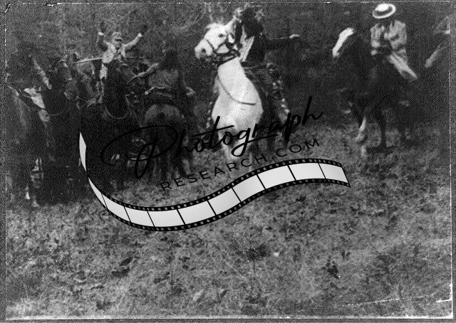 [[Frame of motion picture showing stage coach robbery. n.d.]]
