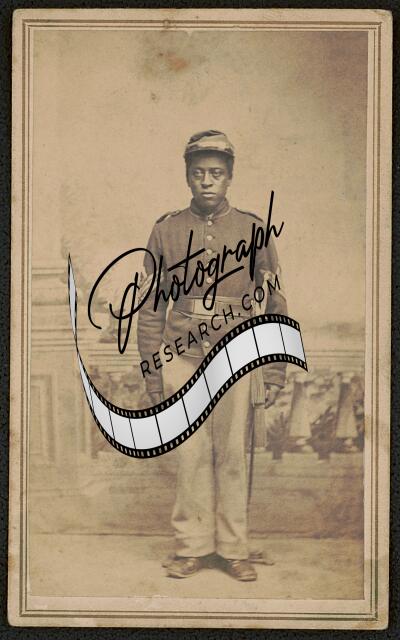 [[First Sergeant Luther Hubbard of Co. C, 26th U.S. Colored Troops Infantry (USCT) Regiment in uniform with sword]] / Sam A. Cooley, Tenth Army Corps, Hilton Head, S.C., Folly Island, S.C., Beaufort, S.C., Jacksonville, Fla.