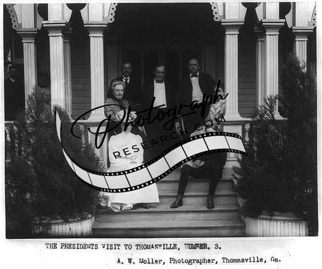 [[President William McKinley, Mark Hanna and others on porch, Thomasville, Ga.]]