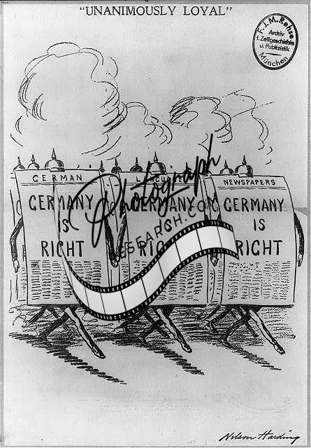 Anti-isolationist cartoon,WWI,German newspaper,marching