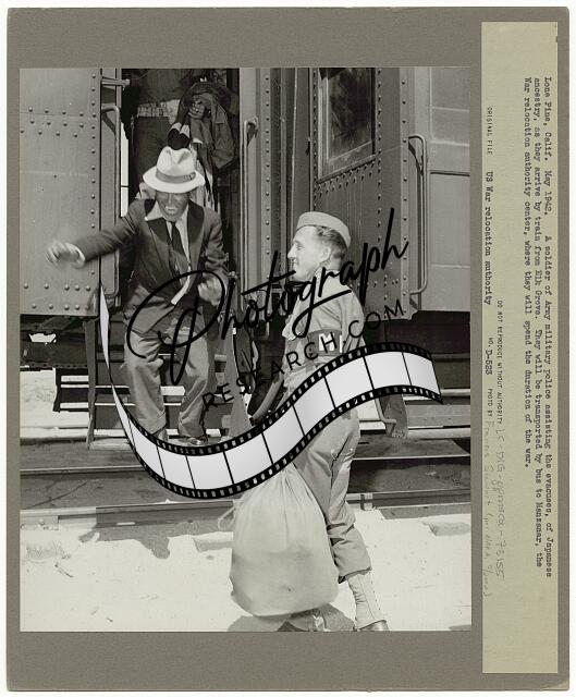 Lone Pine, Calif. May 1942. A soldier of Army military police assisting the evac
