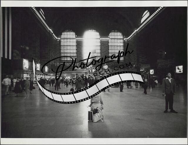 [[Woman sitting on luggage in Grand Central Terminal]]