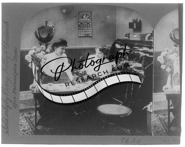 'Just a little bit higher',c1907,women,office,clock,vase of flowers,desks