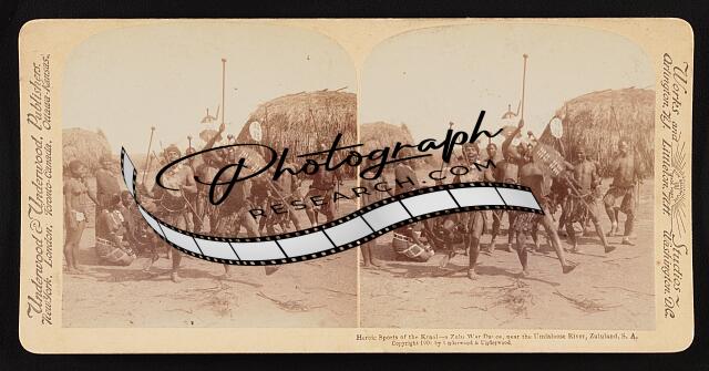Heroic sports of the Kraal--a Zulu war dance, near the Umlaloose River, Zululand