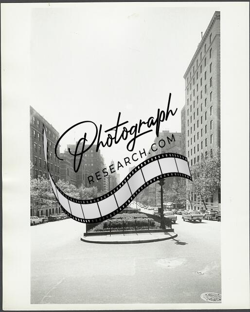 [[View of Park Avenue Malls on 96th Street showing people gathered near benches.