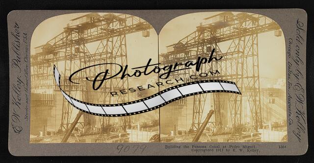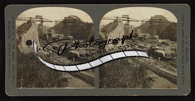 View from top of construction trestle, showing 58-foot gate; Pedro Miguel Locks,