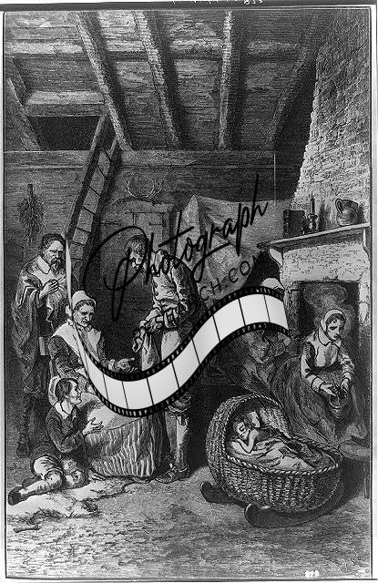 [[Dealing Out the Five Kernels of Corn (Plymouth colony family doling out daily a