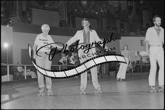 [[People, including an elderly woman, rollerskating at a roller skating rink, Ale