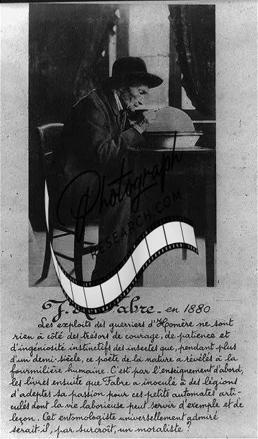 [[Jean Henri Fabre, 1823-1915, full-length portrait, seated at table examining sp