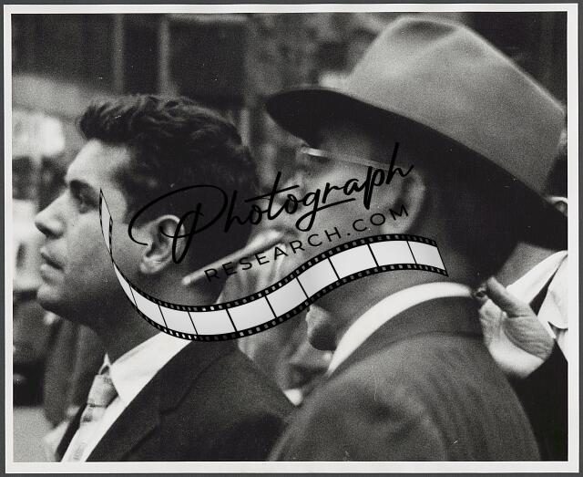 [[Two men facing left, man on right with cigar in mouth]]