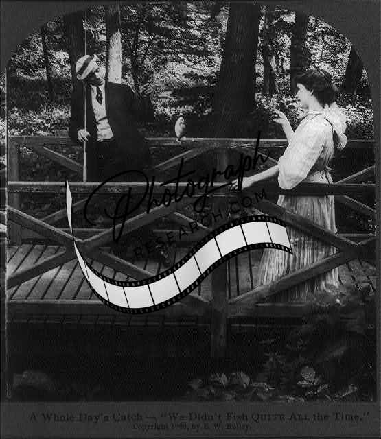 A whole day's catch 'We didn't fish quite all the time.',c 1906,couple on bridge